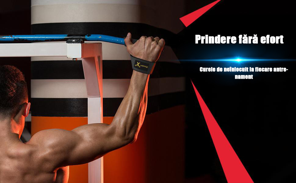 INTARITI MANERELE PENTRU RIDICAREA GREUTATILOR MAI GRELE: Curelele pentru incheietura mainii pentru ridicarea greutatii sunt concepute pentru a va intari manerele, astfel incat sa puteti ridica greutati mai mari fara teama de alunecare. Cu aceste curele de exercitii, va puteti concentra mai mult pe grupurile musculare tinta, cum ar fi spatele, trapele, in loc de puterea manerelor, puteti efectua cu usurinta mai multe repetari. Iar atunci cand forta de prindere incepe sa oboseasca, curelele pentru incheietura mainii pentru ridicarea greutatilor va vor ajuta neaparat sa obtineti ultimul set.