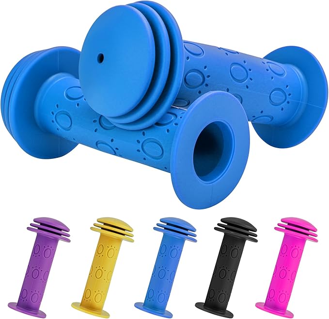 Lungimea de 105 mm este potrivită pentru mâinile copiilor, asigurând o susținere corectă și stabilă. Designul cu capete late tip ciupercă previne alunecarea mâinii de pe ghidon și oferă protecție suplimentară în caz de lovituri sau căzături. Textura antiderapantă îmbunătățește controlul și reduce oboseala în timpul plimbărilor mai lungi. Compatibile cu ghidoane standard de 22.2 mm, aceste mânere sunt potrivite pentru biciclete clasice, biciclete de echilibru, triciclete sau trotinete pentru copii. Instalarea este rapidă și simplă, fără adeziv, oferind o soluție practică și sigură pentru părinți.