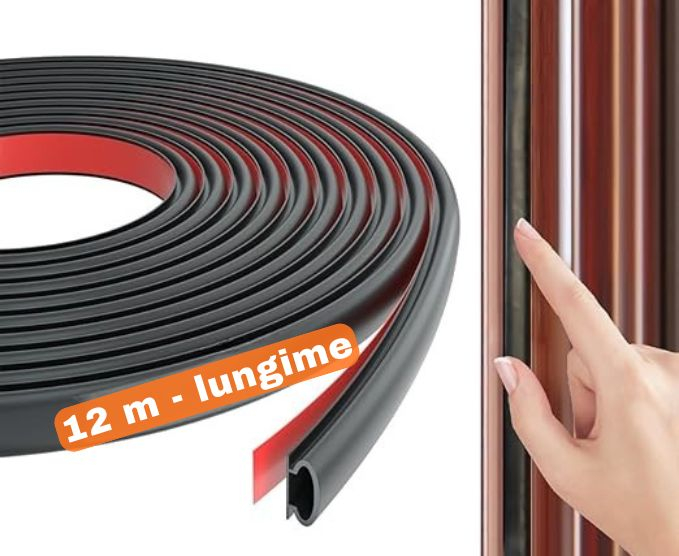Bandă de etanșare autoadezivă pentru uși și ferestre – 12m, cauciuc TPE de înaltă calitate, profil D, izolant fonic și termic, anti-coliziune, rezistentă la apă și temperaturi extreme