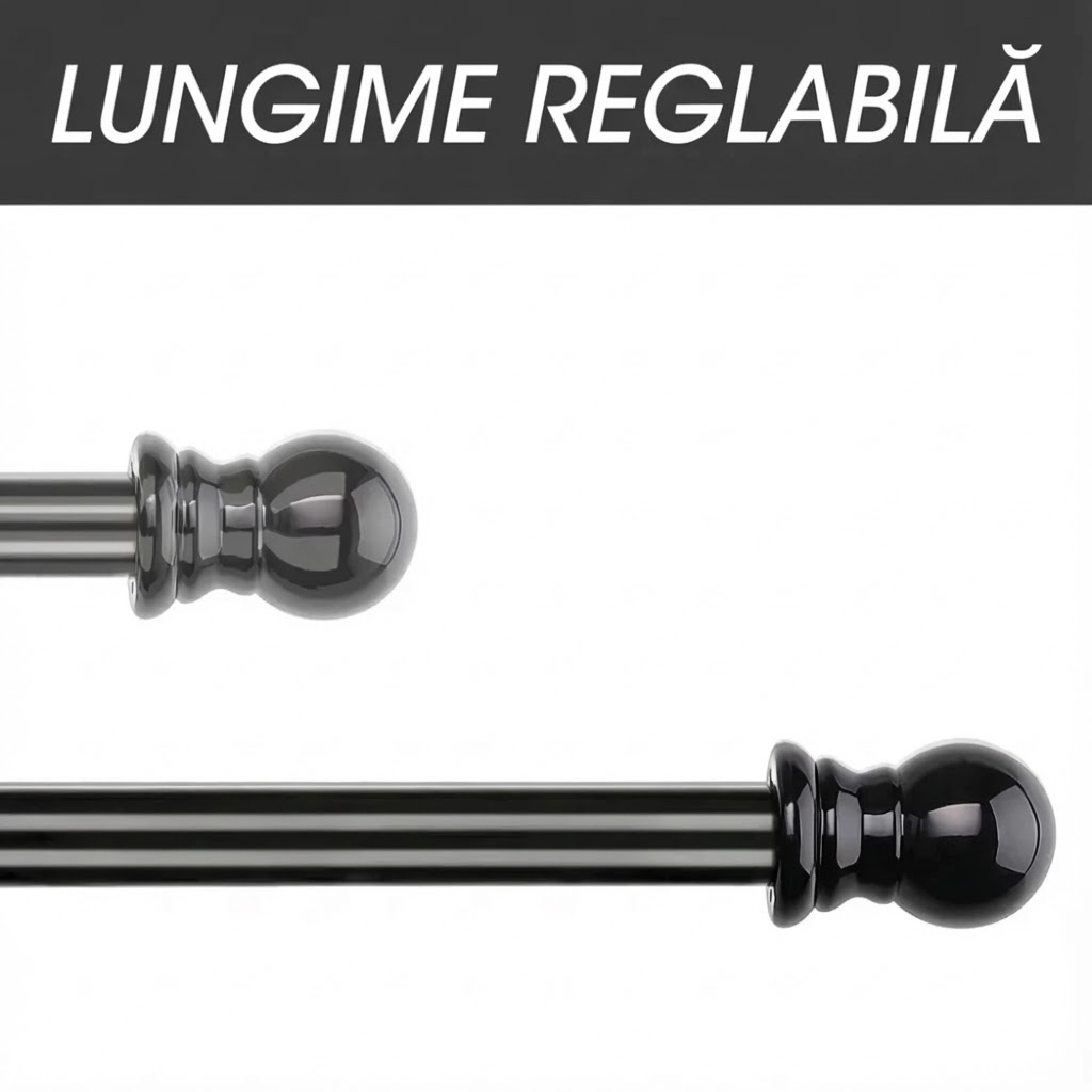 Bară de Perdea Extensibilă Neagră 76–110 cm, Diametru 25 mm – Metalică cu Capete Rotunde, Montaj pe Perete, Segmente Filetate