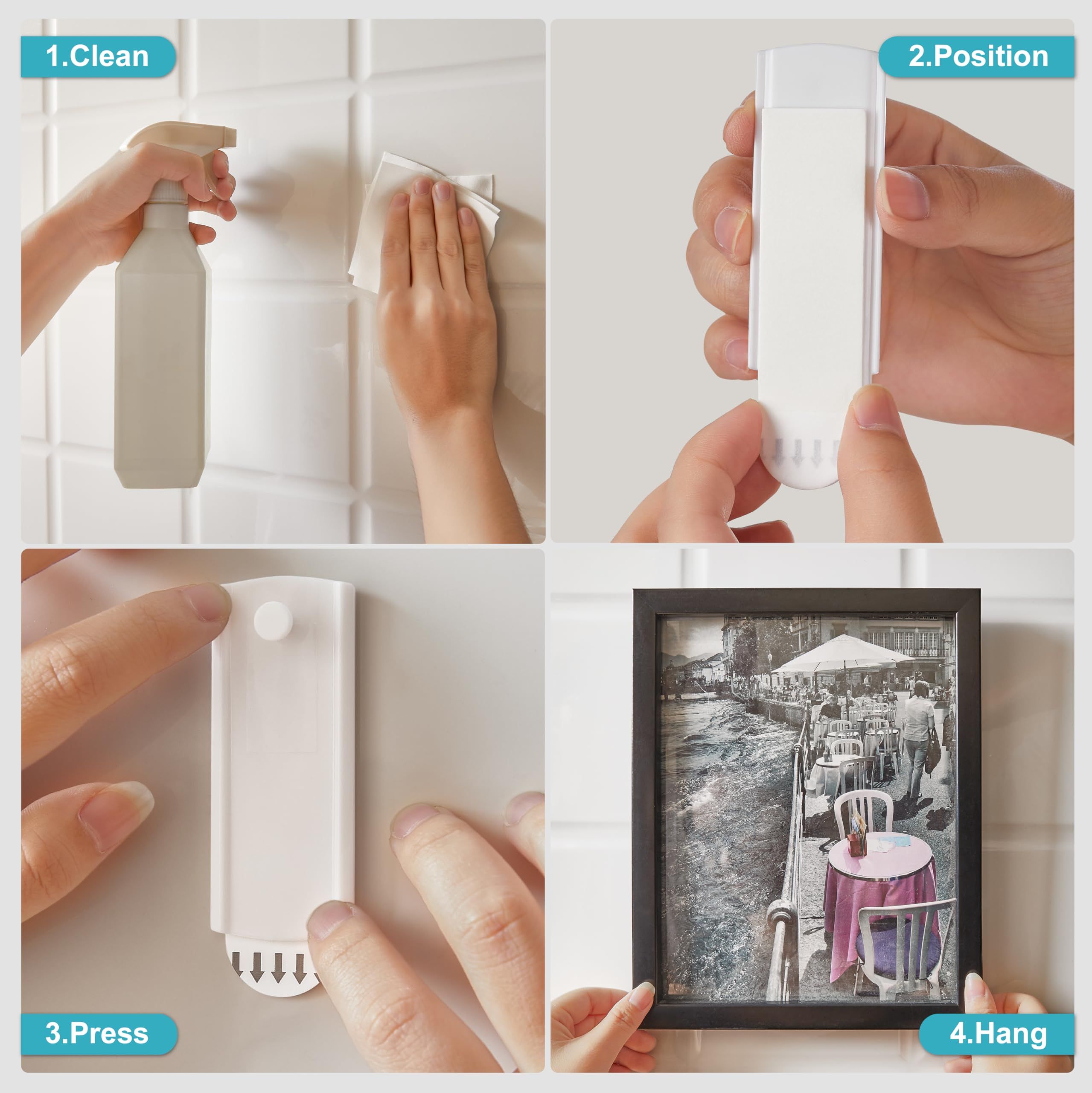 REZISTENTE SI DURABILE: Cuiele sunt concepute pentru a sustine rame foto, tablouri si decoratiuni usoare pana la medii. Fixarea este stabila pe suprafete netede, fara alunecare sau desprindere in timp.