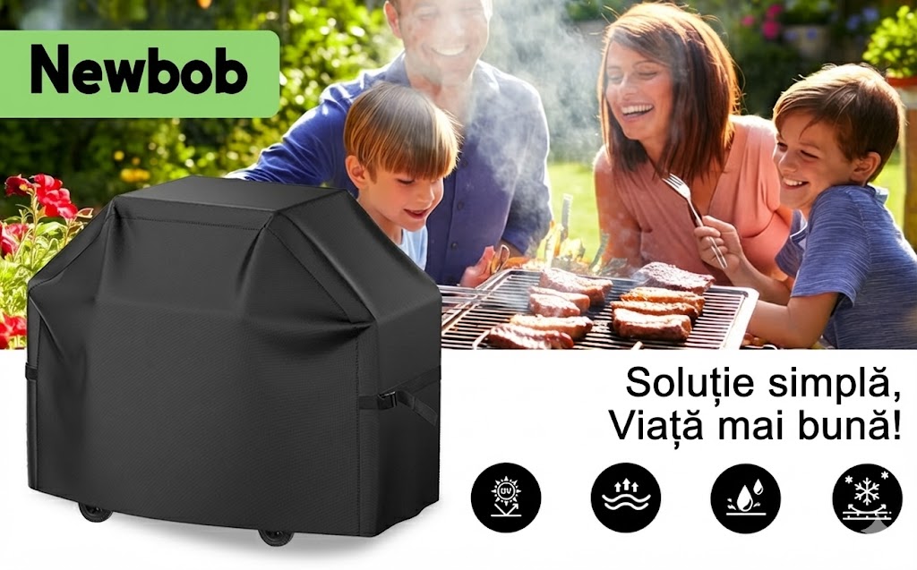 Protejează-ți grătarul eficient pe tot parcursul anului cu această husă universală pentru grătar Newbob, concepută pentru rezistență ridicată la intemperii și fixare sigură chiar și în condiții de vânt puternic. Materialul Oxford 420D, combinat cu strat interior PVC anti-UV, asigură o barieră solidă împotriva ploii, zăpezii, prafului și razelor solare.