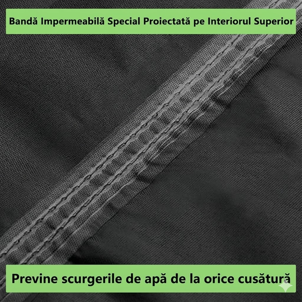 ✔️ Impermeabilă 100%, cu cusături superioare sigilate cu bandă etanșantă