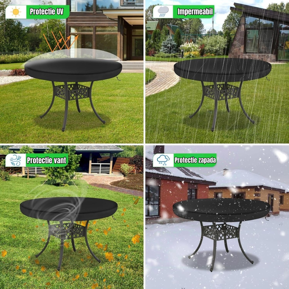 Cu această husă, masa ta de exterior rămâne curată, protejată şi pregătită pentru utilizare indiferent de vreme — o soluţie practică şi estetică pentru proprietarii care doresc durabilitate şi stil.