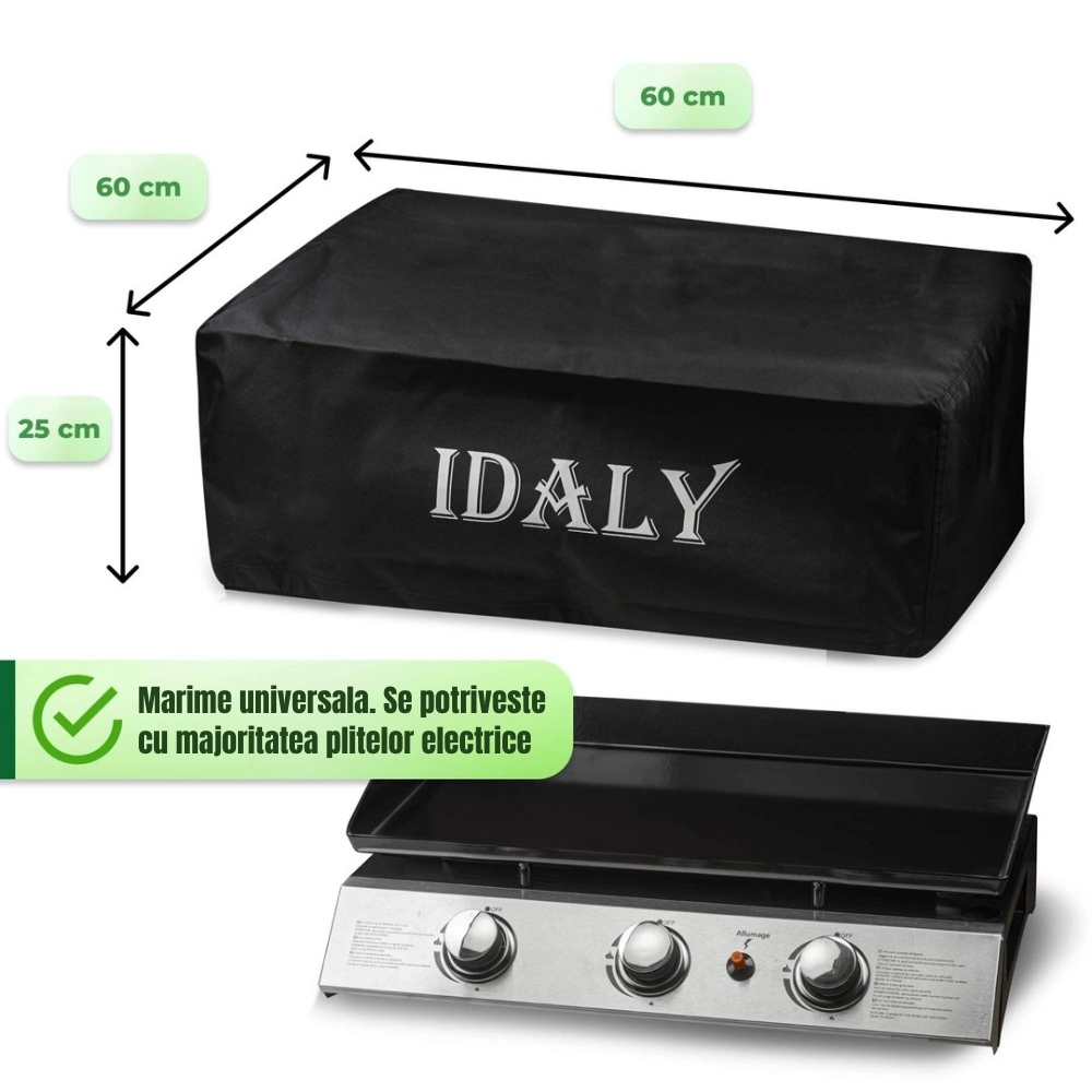 Aceasta husa de protectie pentru plancha, cu dimensiunile 60 x 60 x 25 cm, este conceputa pentru a proteja aparatele de gatit de exterior impotriva ploii, prafului, murdariei si razelor solare. Fabricata din material poliester impermeabil, husa ofera o protectie eficienta pentru plancha, plite, aragazuri de exterior sau gratare de dimensiuni mici.