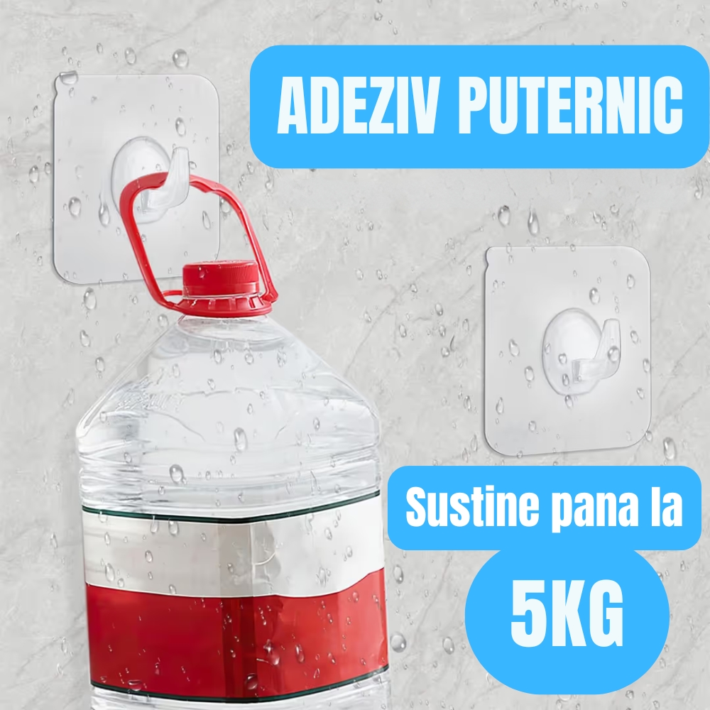ADEZIV PUTERNIC: Fiecare cuier este prevazut cu adeziv de inalta rezistenta, capabil sa sustina pana la 5 kg per bucata, oferind o fixare sigura.