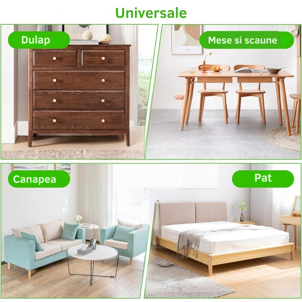 Protectiile pentru picioarele scaunelor sunt concepute pentru a oferi stabilitate, silentiozitate si protectie eficienta a pardoselilor. Setul contine 8 protectii rotunde, compatibile cu picioare de mobilier cu diametrul intre 35 si 38 mm, fiind ideale pentru scaune, mese, taburete sau banci utilizate zilnic.