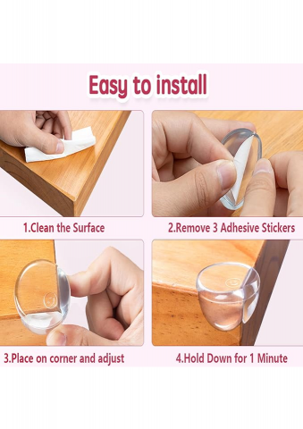 - Utilizare versatilă: Aceste protecții de colț pot fi utilizate pe diverse suprafețe, inclusiv lemn, sticlă, aluminiu, metale, ceramică, marmură și beton. Sunt ideale pentru mese, bufete, comode și alte piese de mobilier. (Recomandate pentru copii de 3+ ani). Nu sunt potrivite pentru suprafețe din tencuială, hârtie, pământ de diatomee, lemn netratat, blaturi de chiuvete și alte suprafețe neuniforme.