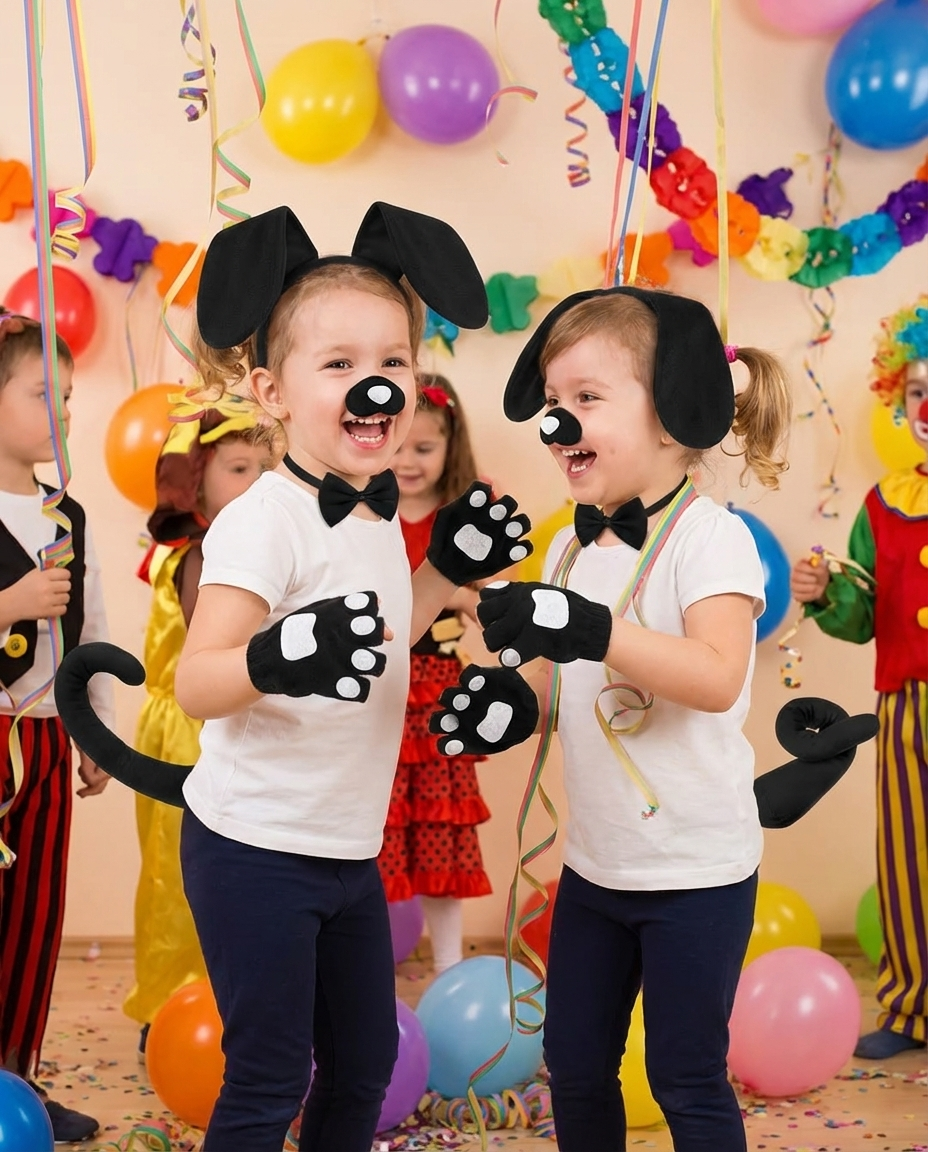 Un costum simplu, dar instant recognoscibil, care transforma orice aparitie intr-una amuzanta. Acest set de costum caine cu accesorii este ideal pentru carnaval, petreceri tematice sau evenimente costumate, fiind usor de purtat si potrivit pentru distractie fara complicatii.
