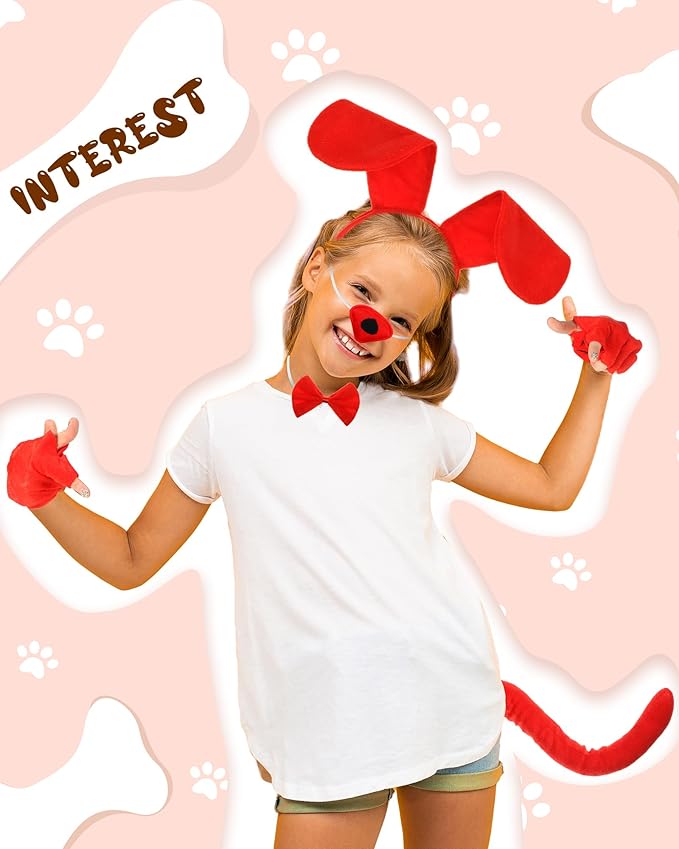 SET COMPLET DE ACCESORII – TRANSFORMARE RAPIDA: Pachetul include bentita cu urechi de caine, nas, coada si manusi, oferind toate elementele necesare pentru un costum complet, fara a fi nevoie de alte piese vestimentare.