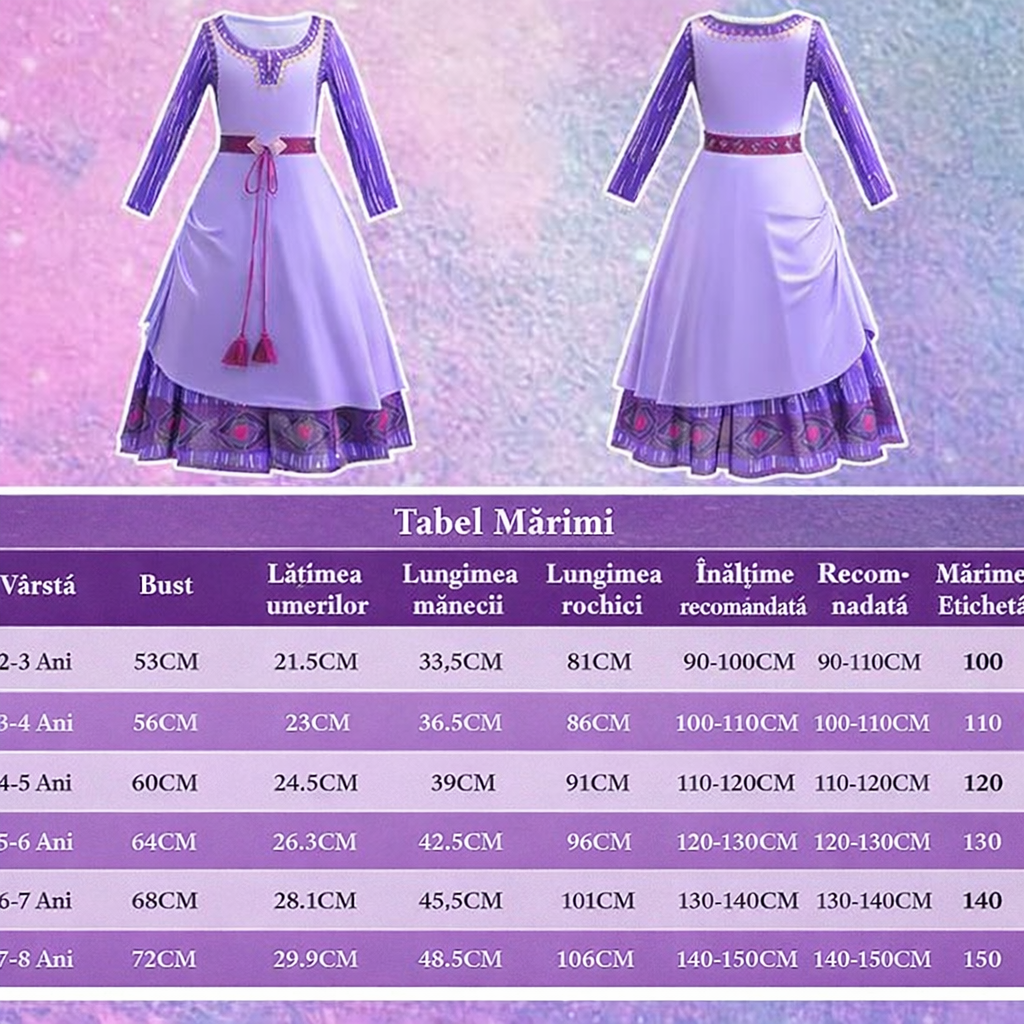 Costum Prințesă Wish Asha pentru Fete – Rochie Mov cu Accesorii Complete, Snyemio, Cosplay Carnaval, Halloween, Petrecerii, Marime 120