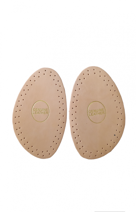 Așezați semi-talpa din piele in partea din față a pantofului, cu partea din piele indreptată spre tavan și partea inchisa la culoare spre pămant. Așezați-l astfel incat să atingă marginile pantofului și să ocupe toată incăperea din față. Pentru a verifica dacă este fixat corect, pune-ți pantoful. Dacă nu simțiți niciun disconfort, atunci talpa dvs. este potrivită. Dacă simțiți vreun disconfort, repetați procesul.