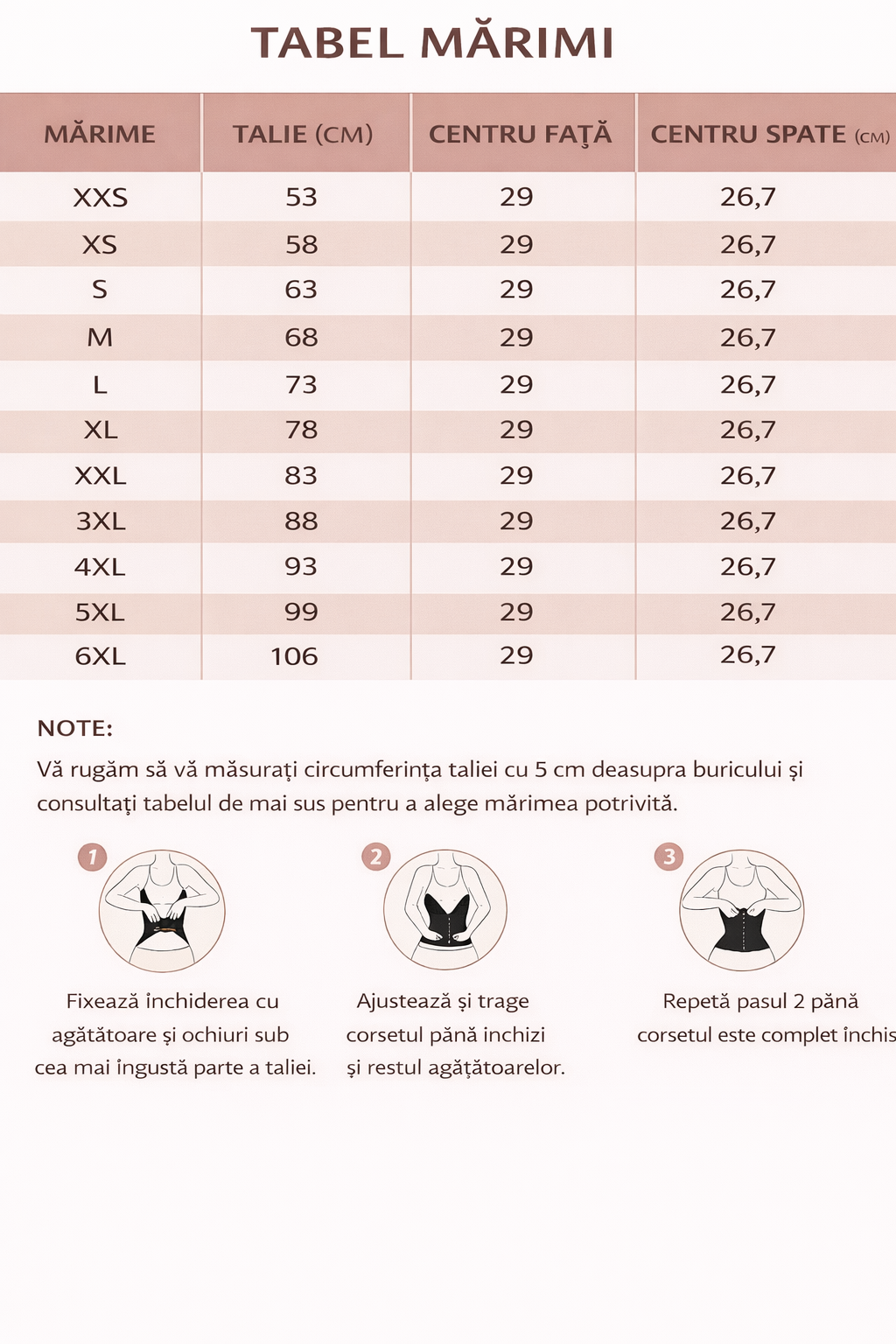 3️⃣ Consultați tabelul de mărimi înainte de comandă pentru alegerea corectă.