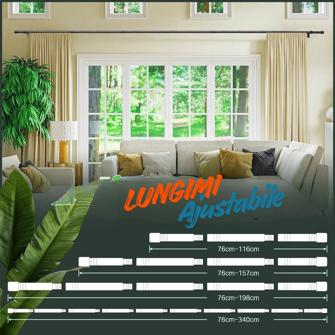 ✔ Extensibilă 76–198 cm – sistem modular cu tije filetate