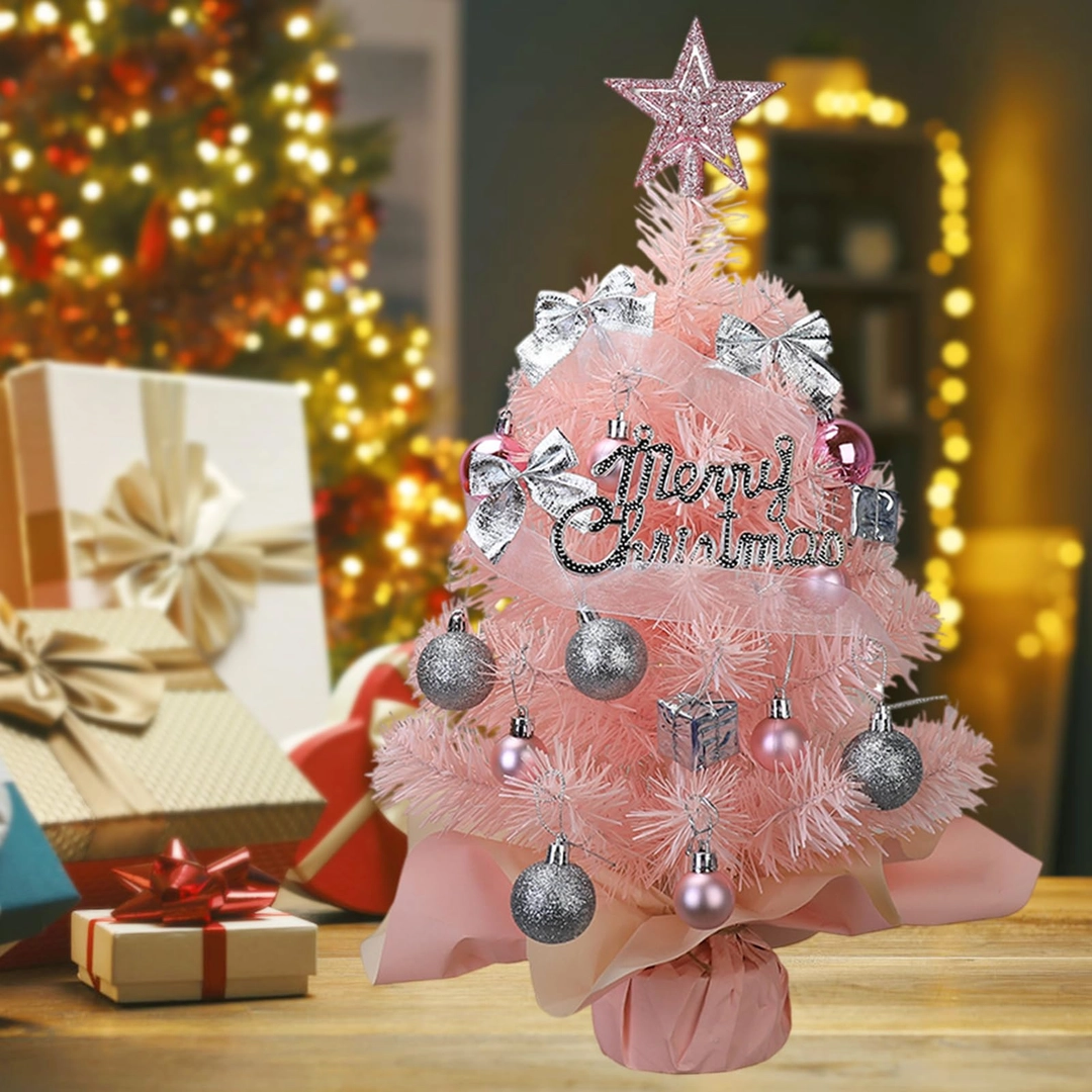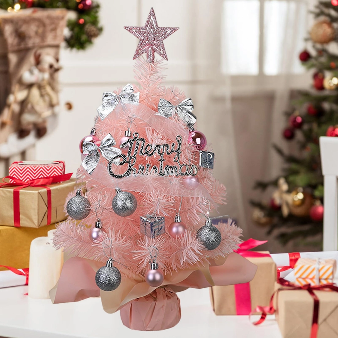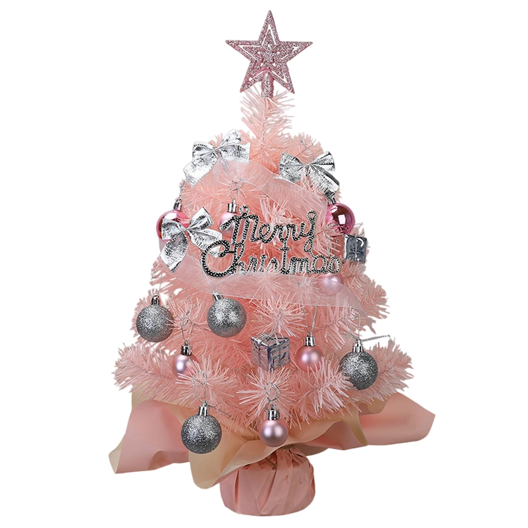 Bradut roz de Craciun, inalt de 60 cm, aduce un strop de eleganta si veselie in orice incapere. Este perfect pentru decorarea biroului, mesei sau rafturilor in perioada sarbatorilor. Bradutul este artificial, usor de montat, si vine echipat cu instalatie LED si ornamente colorate, oferind o atmosfera calda si festiva.