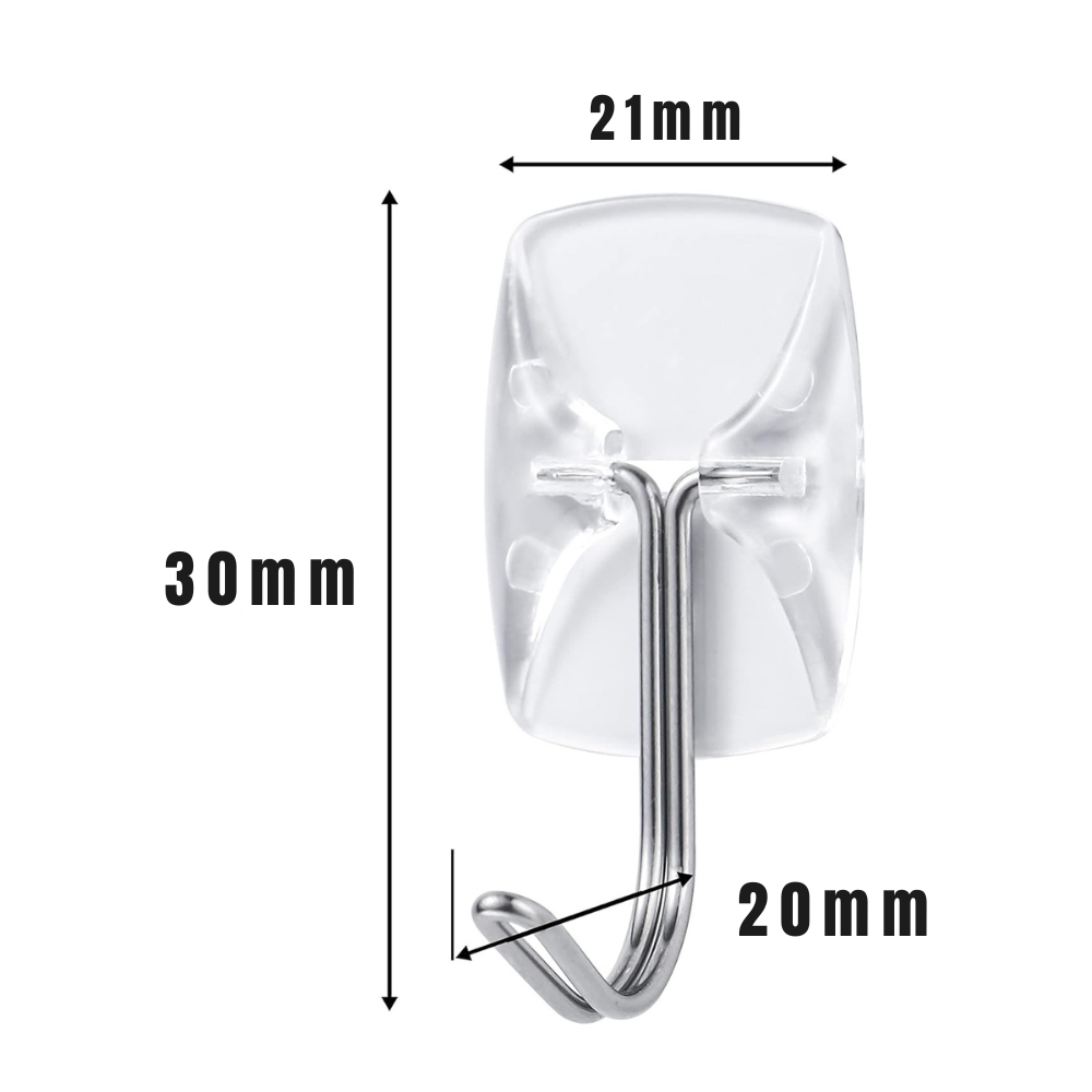 Set 20 carlige mici, Autoadezive, Transparente + 24 benzi adezive, fara gauri in pereti, Rezistente