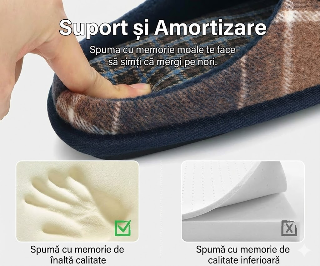 ✔️ 2️Confort superior cu Memory Foam Stratul de spumă cu memorie de înaltă densitate absoarbe șocurile și se mulează pe forma piciorului, oferind o senzație de amortizare la fiecare pas.