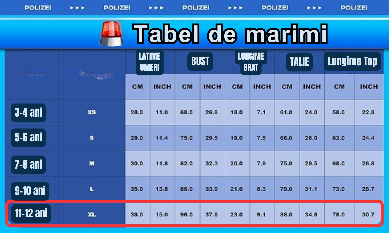 Acest costum de Politist pentru fetite (11-12 ani) este ideal pentru jocuri de rol, serbari, petreceri tematice, carnaval sau Halloween. Costumul transforma joaca obisnuita intr-o lume plina de imaginatie si actiune, incurajand creativitatea, comunicarea si interpretarea unor personaje pozitive.