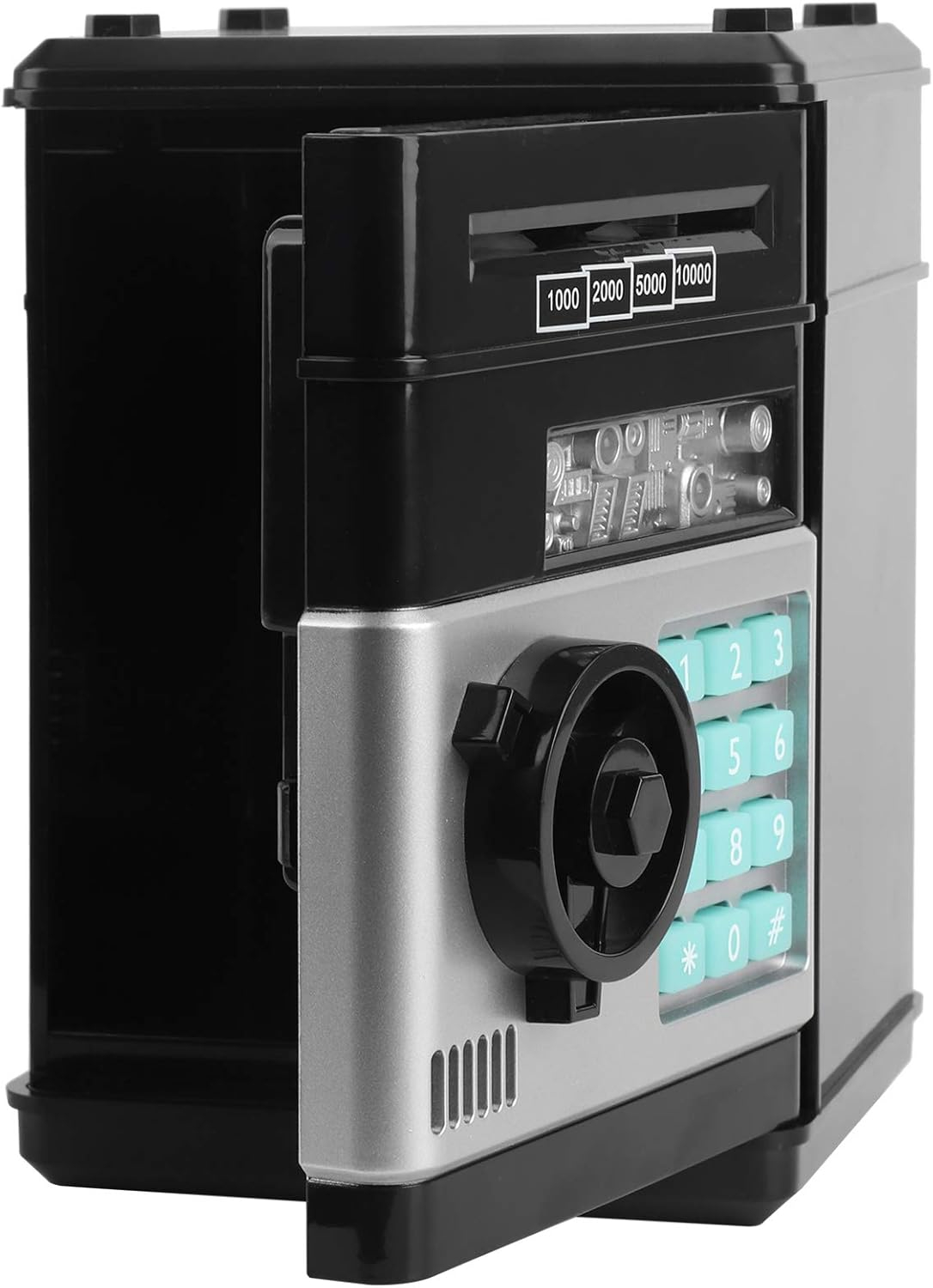 Pentru siguranța economiilor, pușculița este dotată cu parolă din 4 cifre (0000 implicit), care poate fi schimbată oricând. În cazul în care copilul uită parola, există opțiuni simple de resetare. Astfel, micii economisitori învață despre responsabilitate, siguranță și valoarea banilor.
