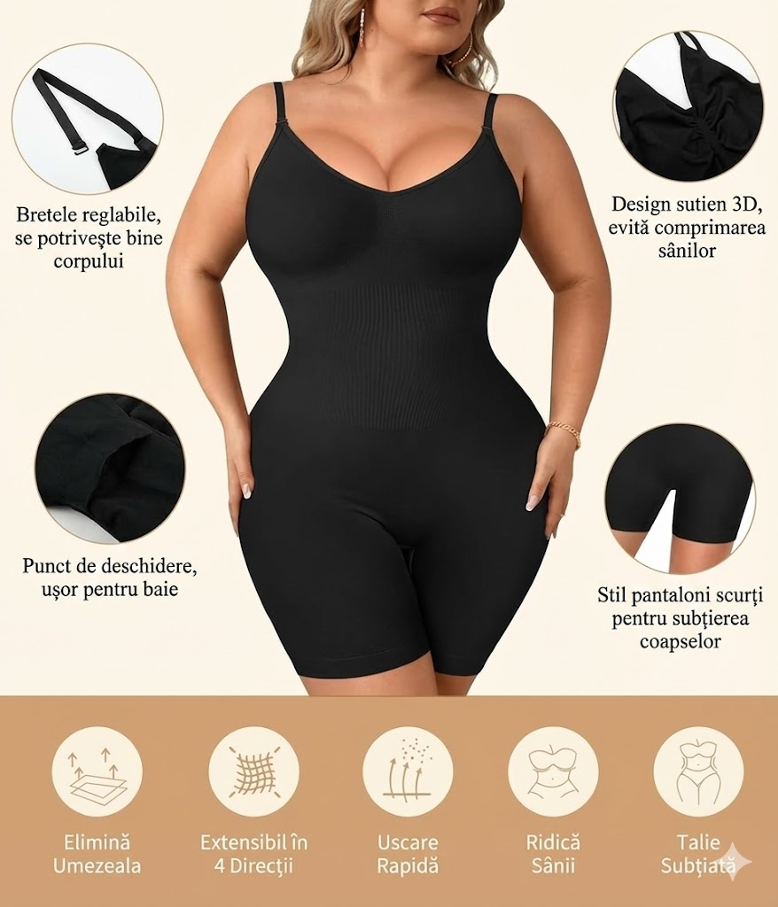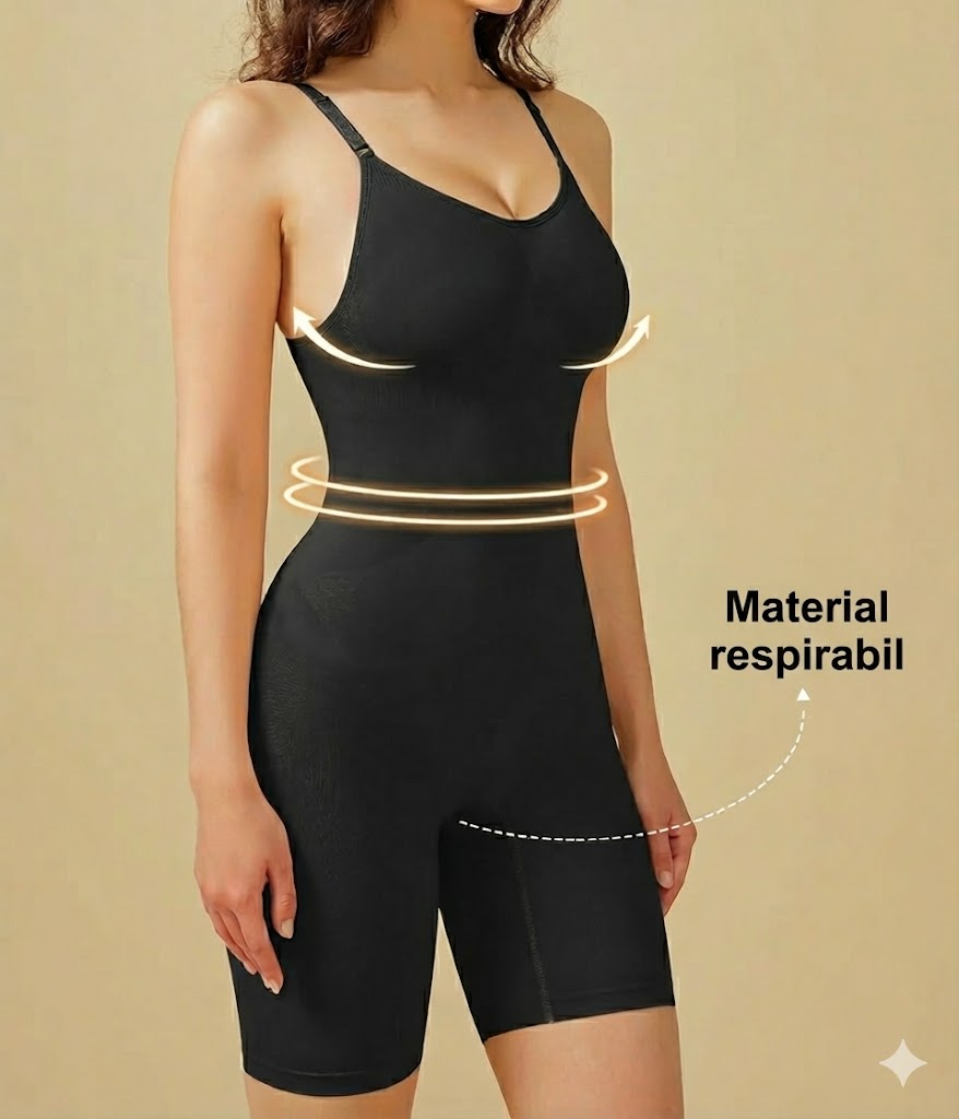 Body-ul acționează ca o a doua piele, netezind abdomenul, talia și spatele, conturând fesele și oferind un aspect elegant și natural. Este potrivit pentru birou, evenimente, ieșiri, purtare zilnică sau ocazii speciale, în orice sezon.