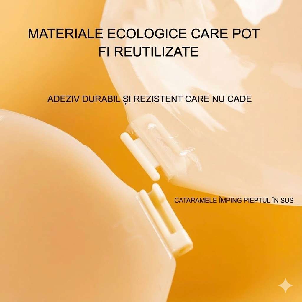 Bucură-te de libertate totală și un decolteu perfect conturat cu sutienul invizibil autoadeziv MHINESE, realizat din silicon de înaltă calitate, prietenos cu pielea și reutilizabil. Conceput pentru a oferi susținere și efect de ridicare fără bretele sau spate, acest sutien este soluția ideală pentru ținute îndrăznețe și elegante.