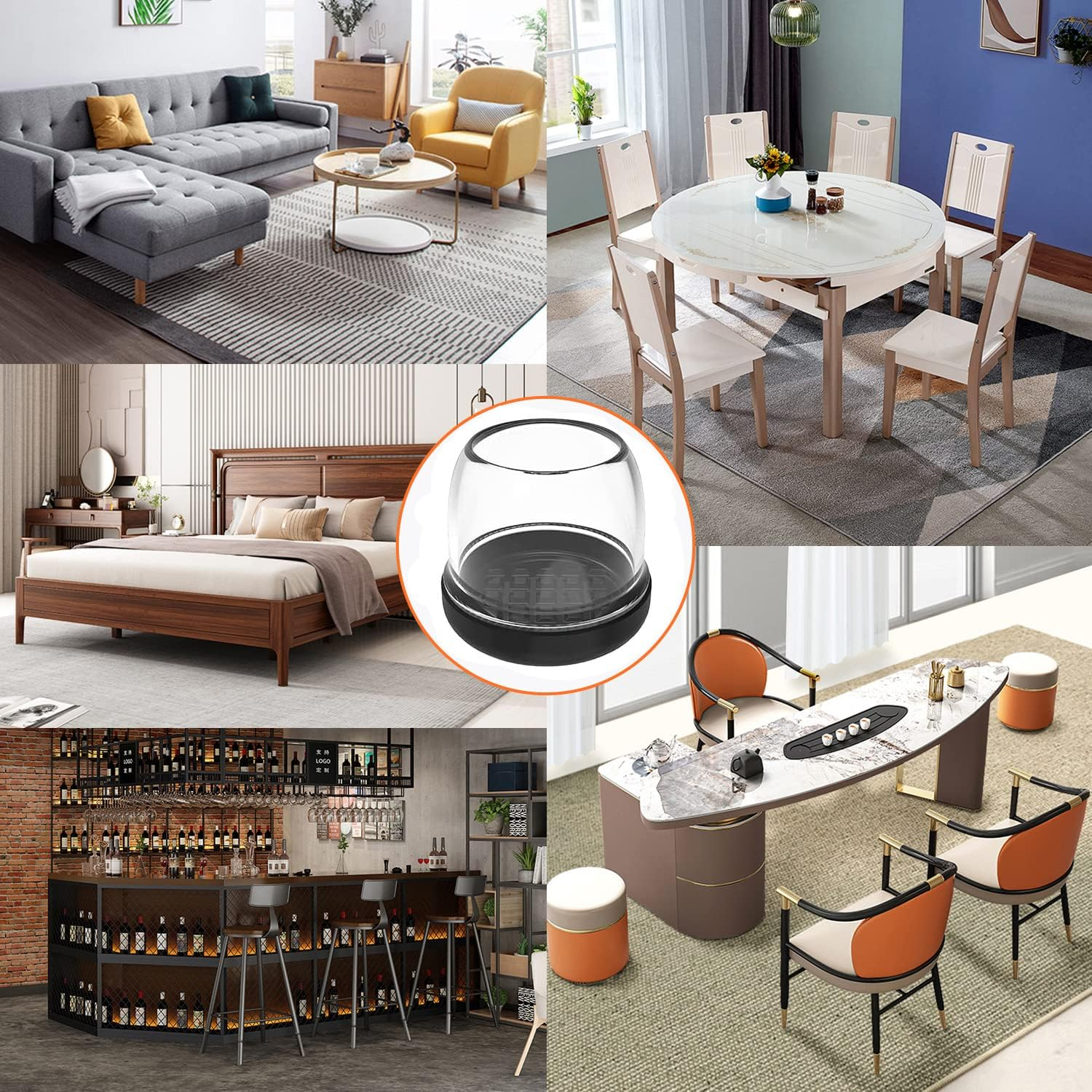 Acest set de 16 protectii rotunde pentru picioarele scaunelor, compatibile cu diametre de 28-36 mm, este ideal pentru utilizarea pe covor, mocheta, carpete sau suprafete textile. Protectiile sunt realizate din TPE transparent, elastic si moale, oferind o prindere sigura pe piciorul scaunului, fara adeziv.