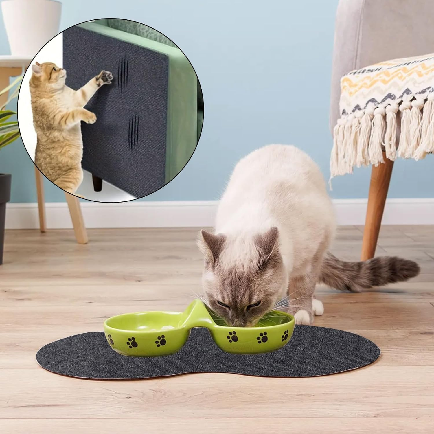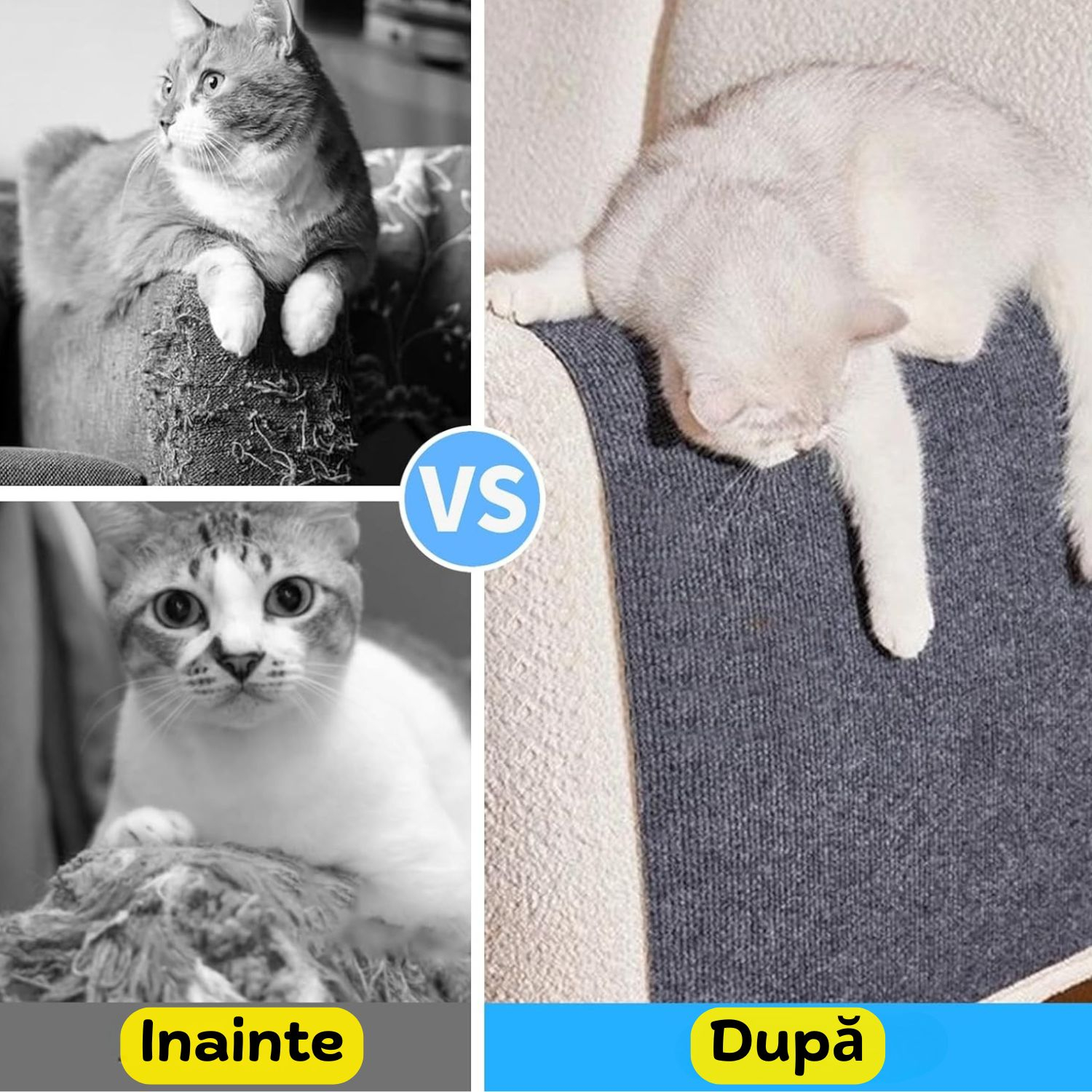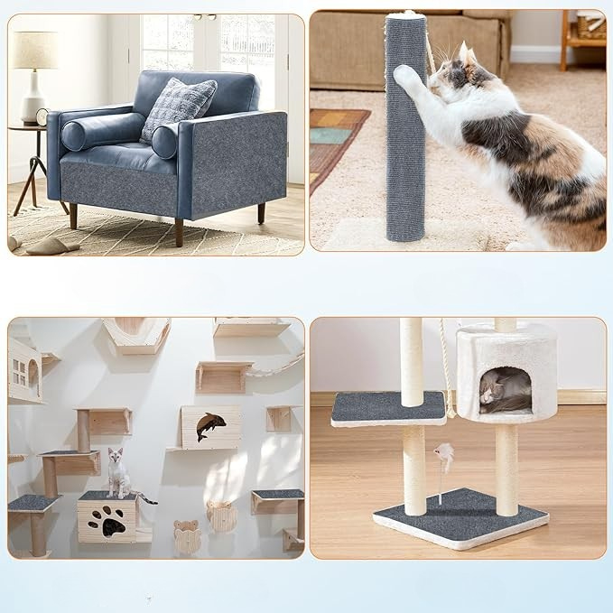 ✔️ Utilizare multiplă – Poate fi aplicat pe canapele, scaune, mese, pereți sau folosit ca covoraș de joacă, zonă de odihnă sau suport de antrenament pentru pisici.