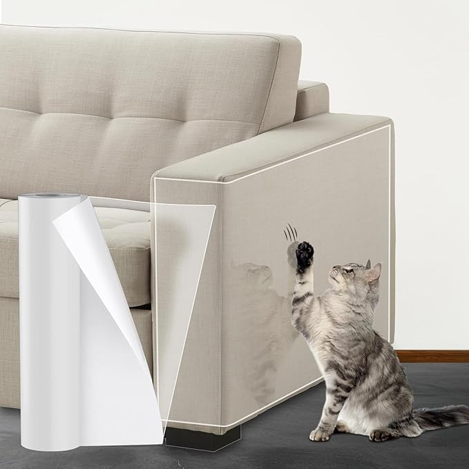 Protejează-ți canapeaua, pereții și ușile de zgârieturile pisicii cu folia transparentă autoadezivă anti-zgârieturi. Flexibilă, ușor de aplicat și invizibilă, această protecție menține mobilierul impecabil fără a afecta estetica locuinței.