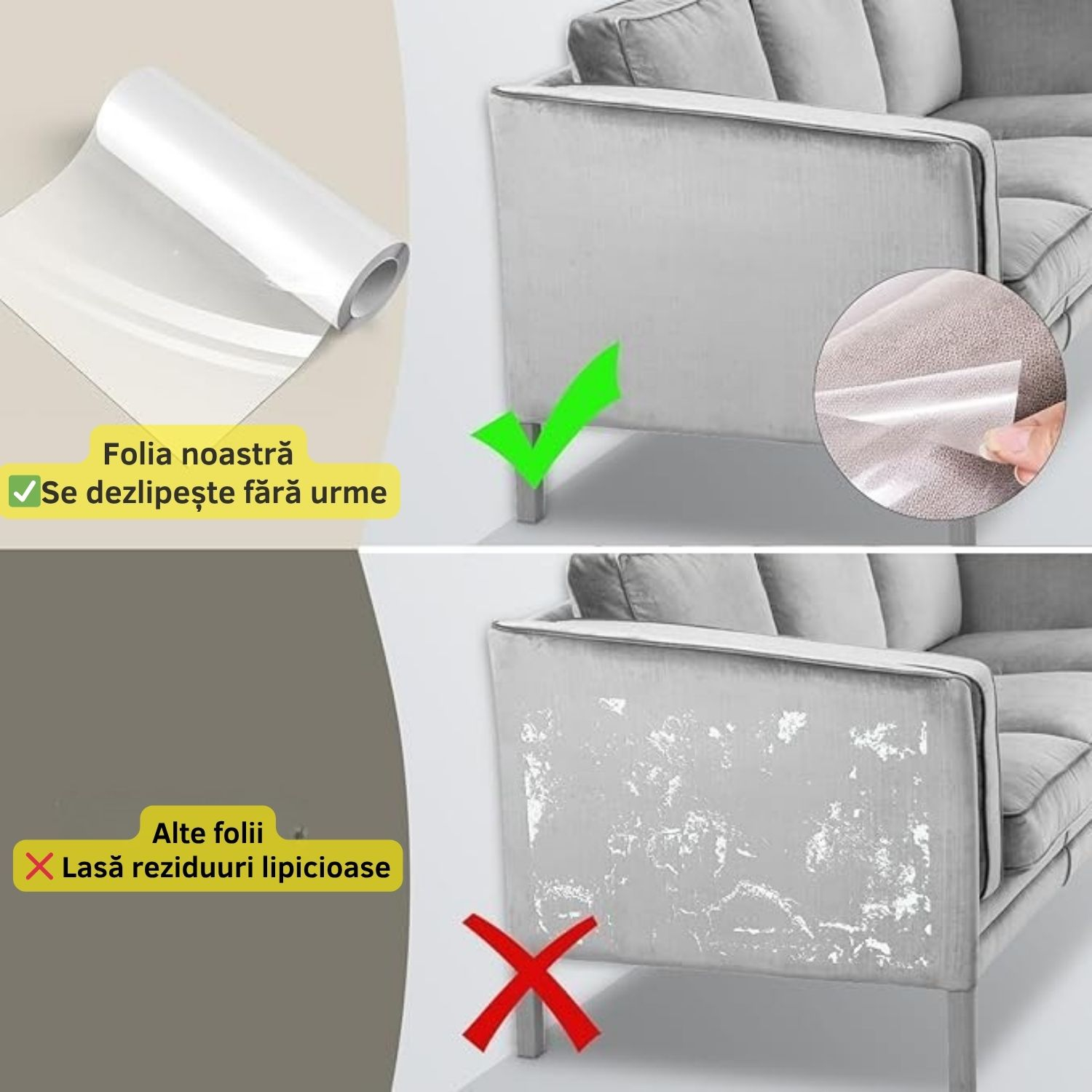 ✔️ Rezistență sporită – Fabricată din vinil îngroșat, folia rezistă la zgârieturi, uzură și murdărie, fiind ideală pentru canapele, pereți, uși sau colțuri de mobilier.