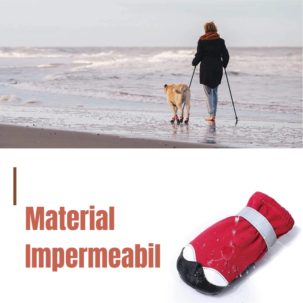 set de incaltaminte impermeabila pentru caini, format din 4 bucati, este special conceput pentru a proteja labele cainilor de talie mare in conditii dificile de vreme. Marimea #7 este potrivita pentru caini cu latimea interioara a labei de aproximativ 8,5 cm, oferind o potrivire confortabila si sigura.