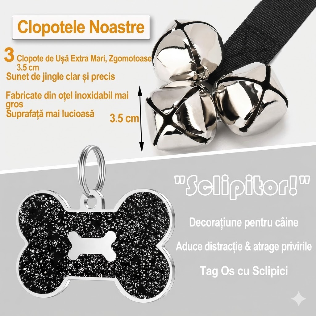 ✔️ Clopoței mari din oțel inoxidabil, cu sunet clar și puternic, ușor de auzit din orice cameră