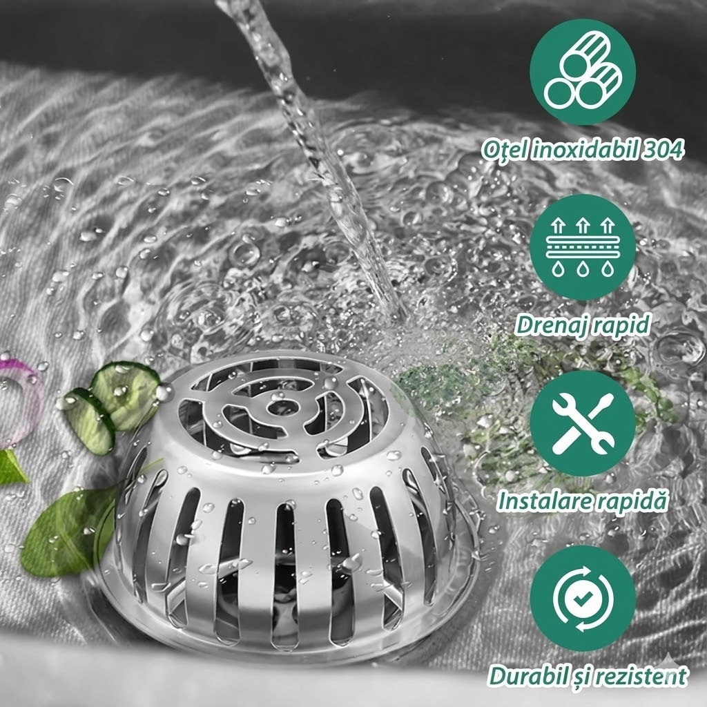 1️⃣ Protecție eficientă anti-înfundare – blochează frunze, mușchi, crengi mici și resturi